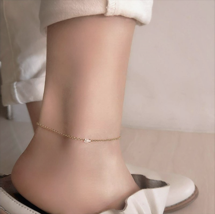 │輕奢│晶透方塊 • 高質感 • 腳鍊 • 美國14K注金 • 14kgf
