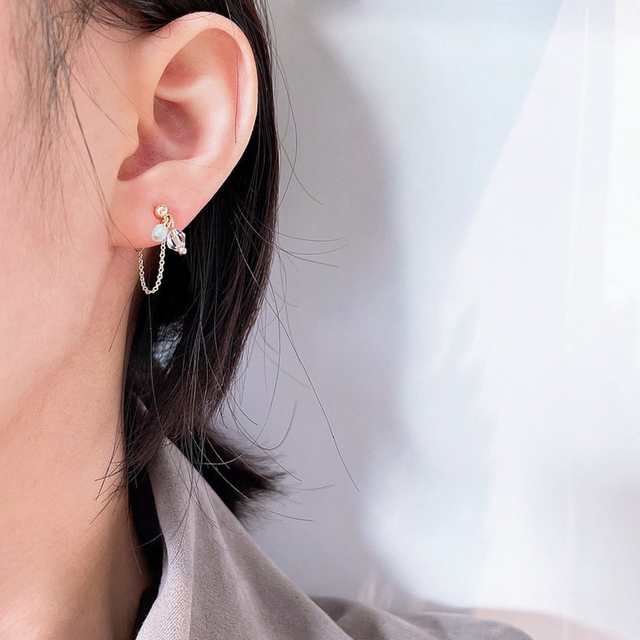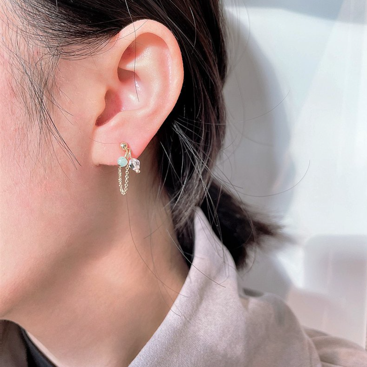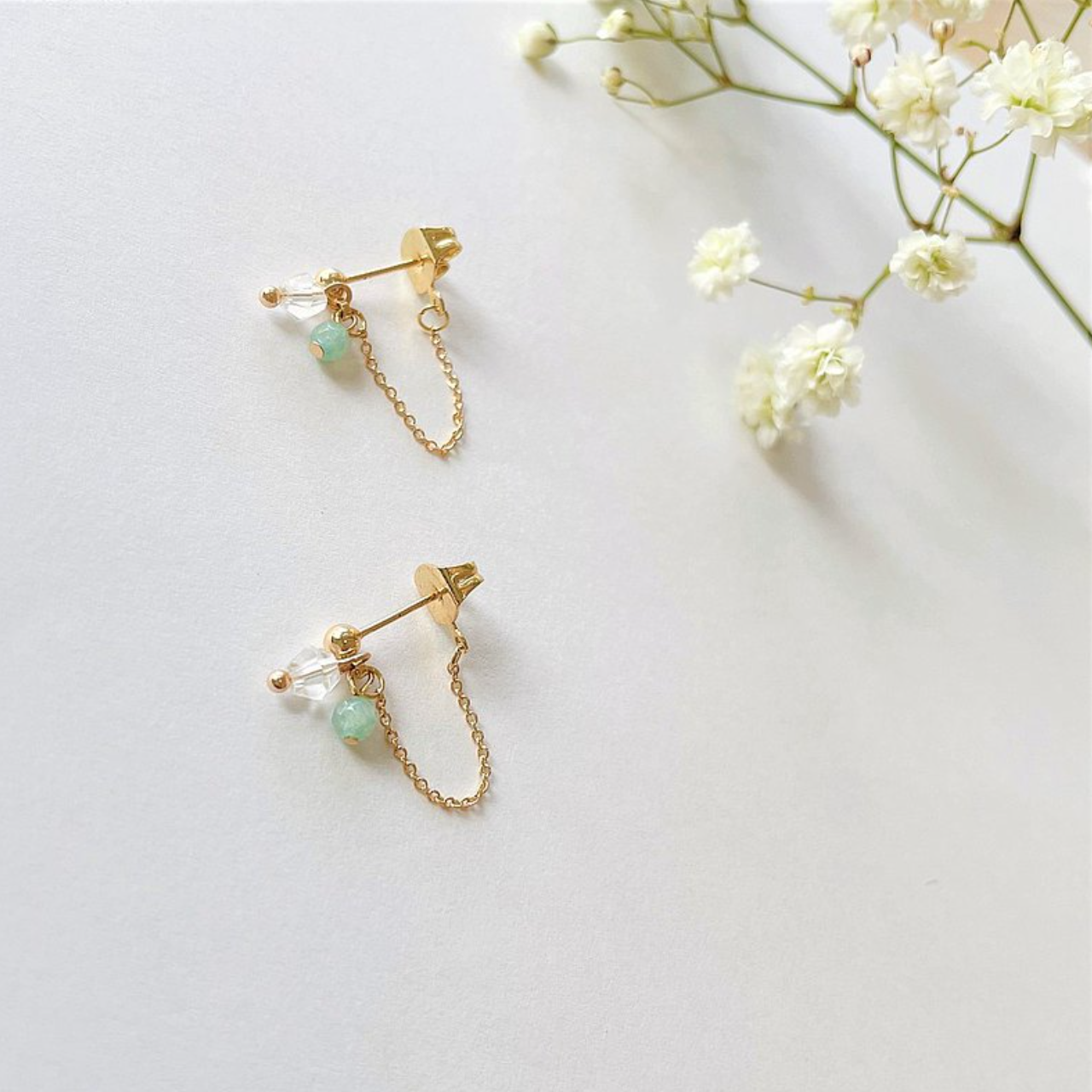 │輕奢│天河石 • 微垂墜耳鍊 • 耳針 • 14K注金 • 14kgf