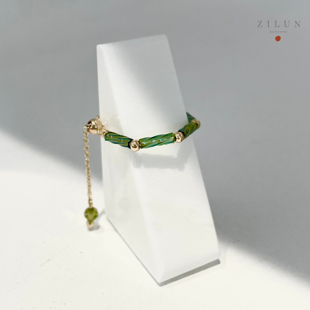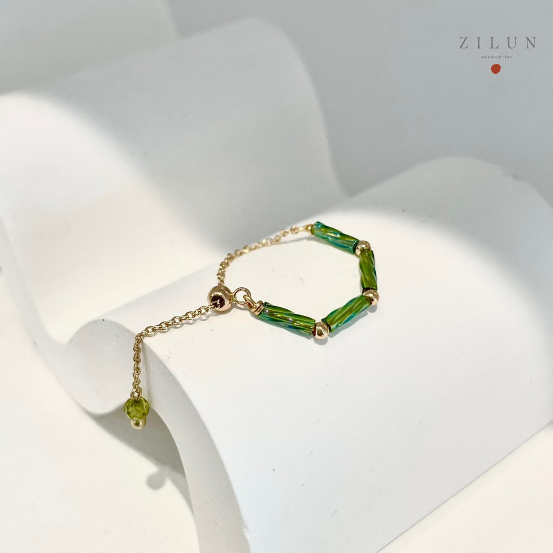 │輕奢│法式螺紋 • 橄欖綠 • 可調式鍊戒 • 戒指 • 14K注金 • 14kgf