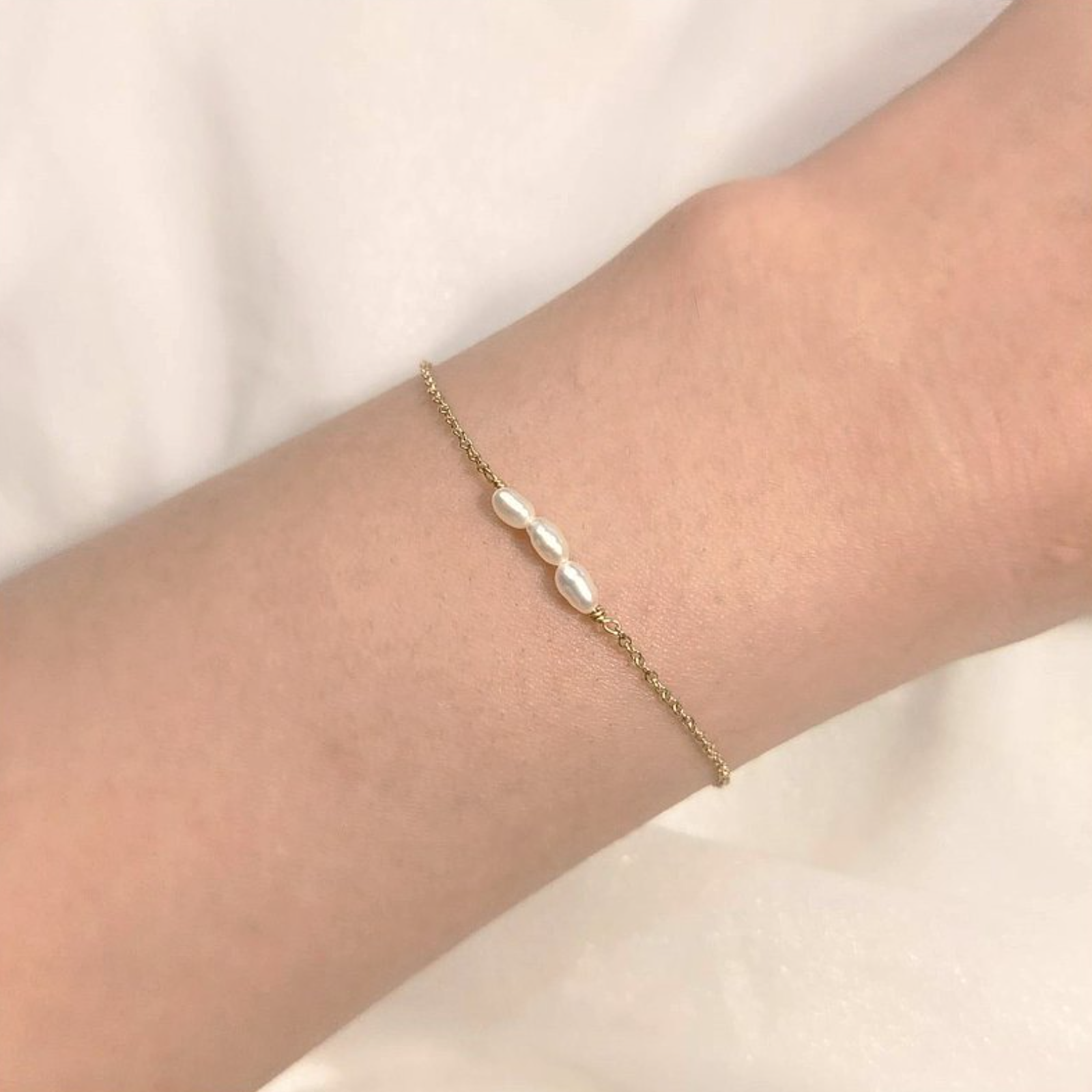│輕珠寶│米型小珍珠 • 極簡手鍊 • 美國14kgf