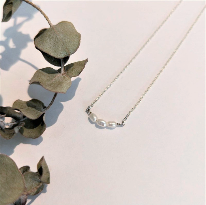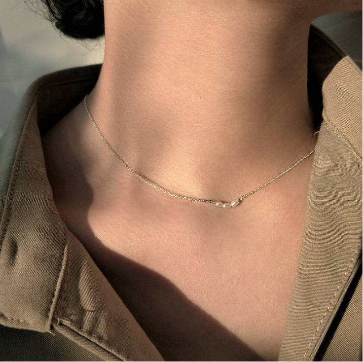 │輕珠寶│米型小珍珠 • 三顆款 • 鎖骨鍊 • 14K注金 • 純銀項鍊