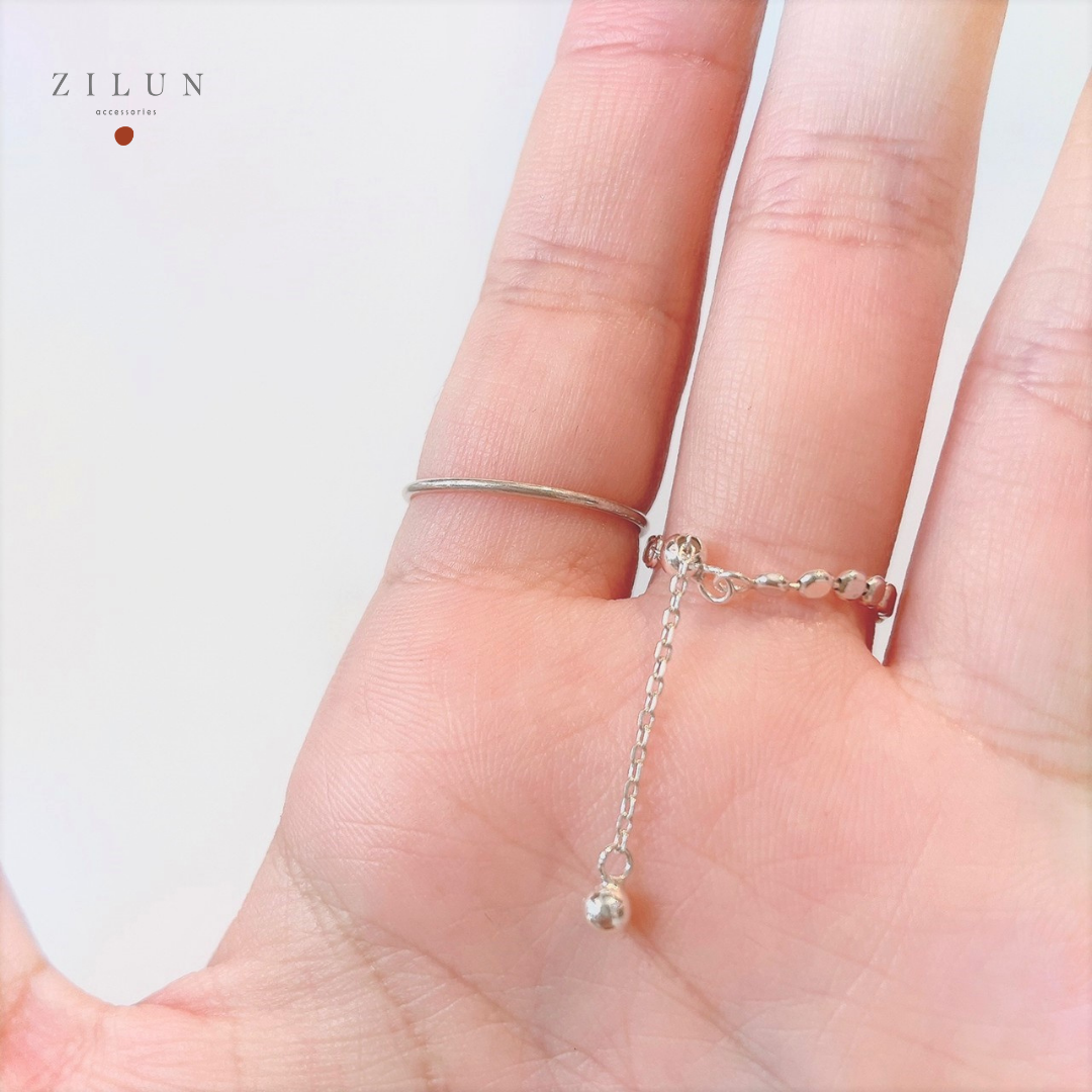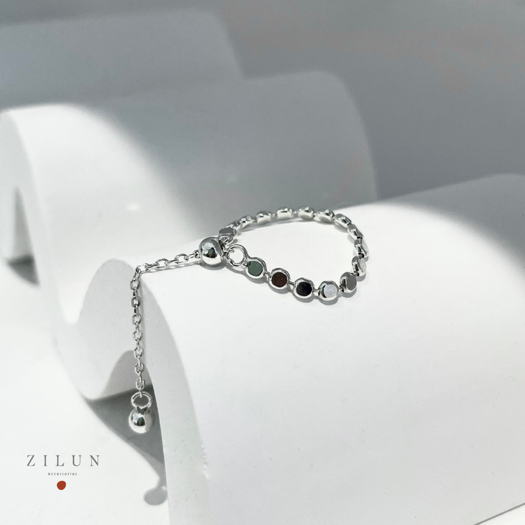 │簡約│雪點 • 扁珠 • 可調式鍊戒 • 純銀戒指 • 925silver