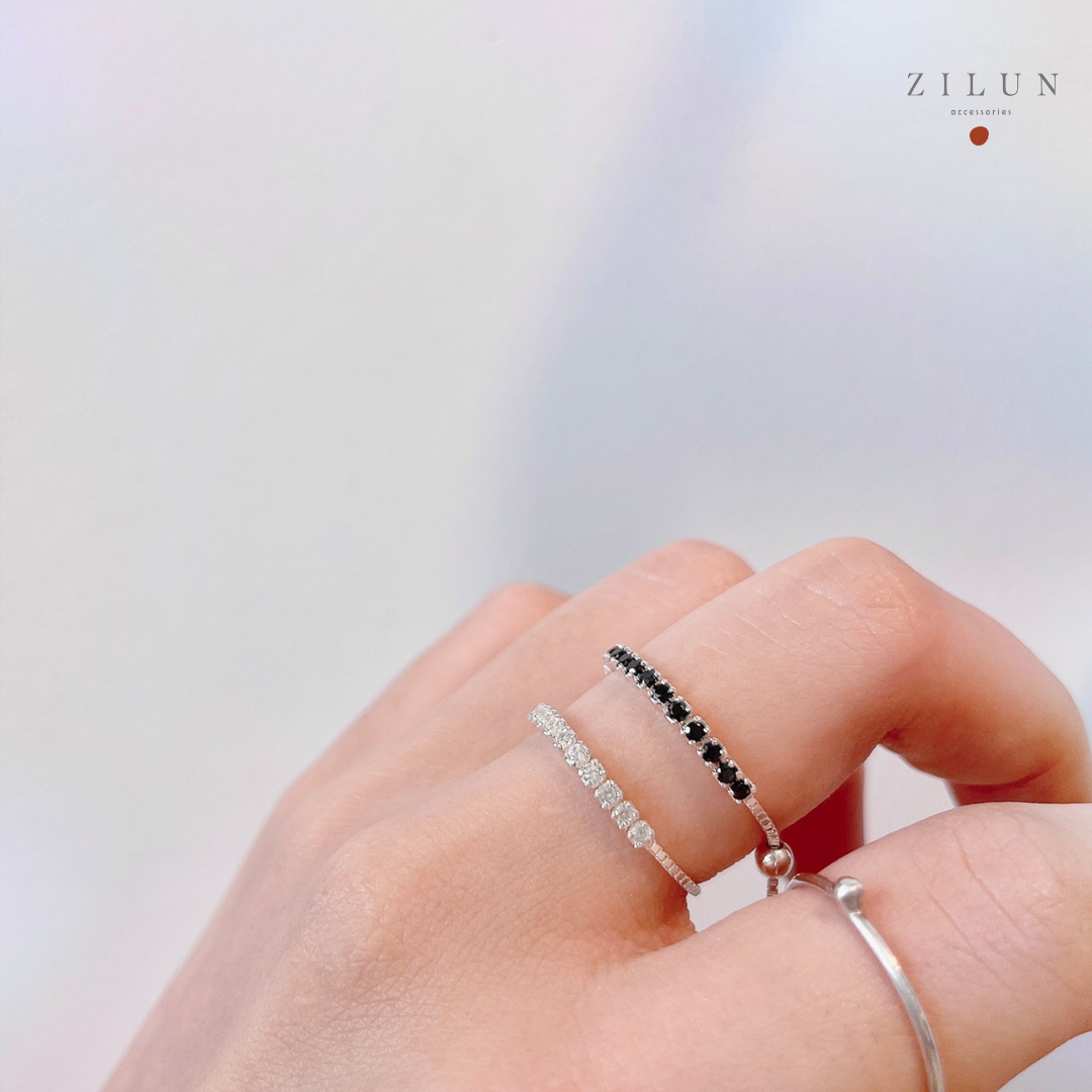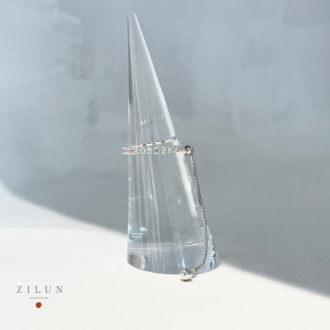 │簡約│晶透白 • 微鑲鋯石 • 可調式鍊戒 • 純銀戒指 • 925silver