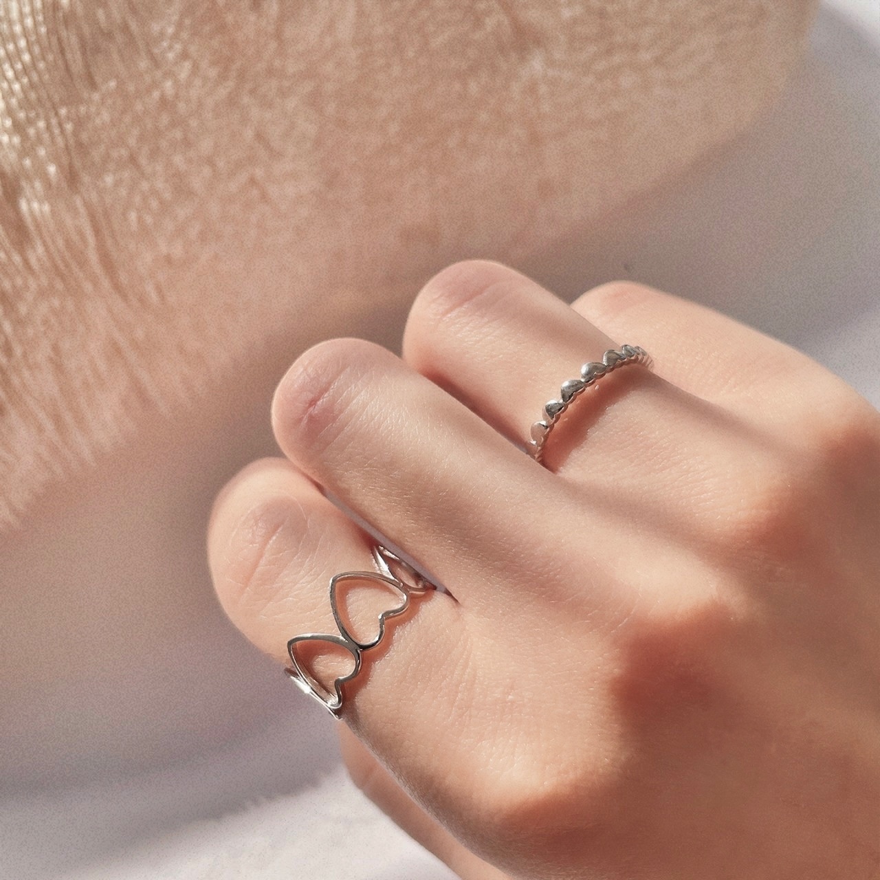 │套組│簍空愛心 • 心串串 • 開口戒 • 純銀戒指 • S925